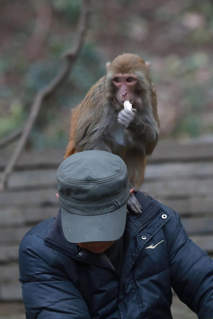贵阳黔灵山,猴子紧追游客讨食。(图/视觉中国)