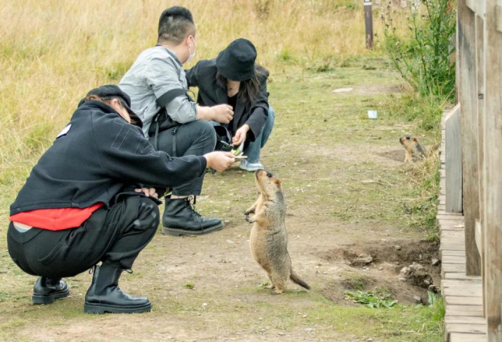 游客纷纷带着小饼干前来,令野生旱獭过上了“饭来张口”的生活。后来,游客又不断“发掘”出可以和旱獭互动的地区,一些景区也迅速跟进,甚至默许将与旱獭的互动打造为体验之一。