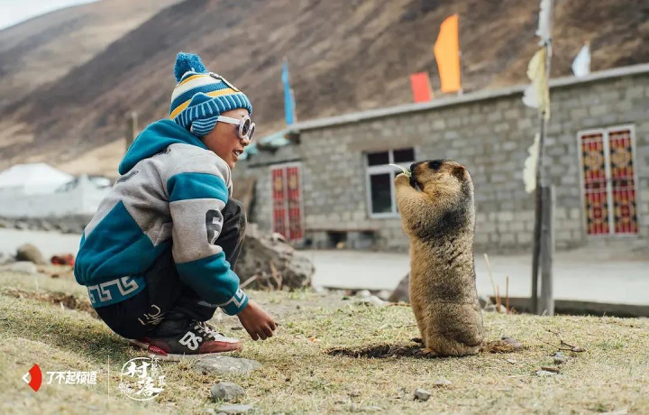 纪录片《了不起的村落》第二季,记录了莫斯卡村的小居民扎西与土拨鼠的温馨互动。(图/豆瓣)