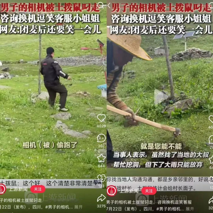 近年来,这种“被草原土匪打劫”的场景在社交媒体上并不少见。自驾行驶于川藏线、西北环线等热门线路上的游客,总有机会遇上车钥匙、相机甚至手机被土拨鼠抢走的情况。